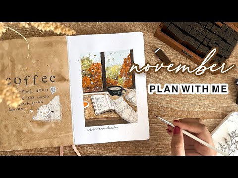 November 2023 Bullet Journal | Plan With Me | Autumnal Cozy Cafe Theme. Painting In Gouache