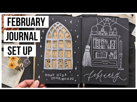 Plan With Me February 2023 Bullet Journal Set Up | Witchy Apothecary Doodles & Cutout Window